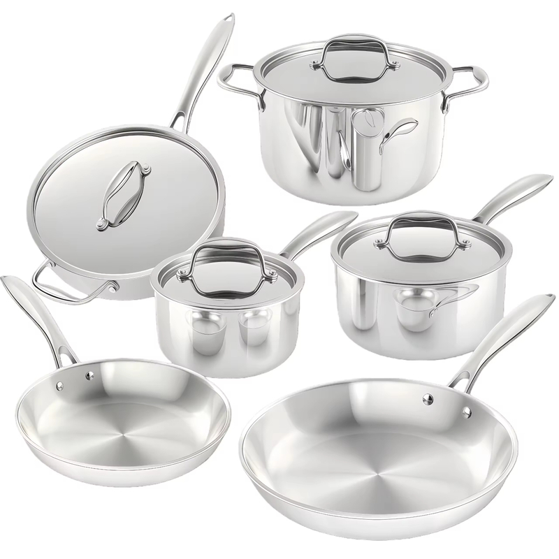Home » Products » Cookware » Cookware Set » Stainless Steel Cookware Set » Modern Stainless Steel 10-Piece Cooking Pot Set Eco-Friendly Oven Safe Induction Bottom Tempered Glass Lid Metal Pans Efficient