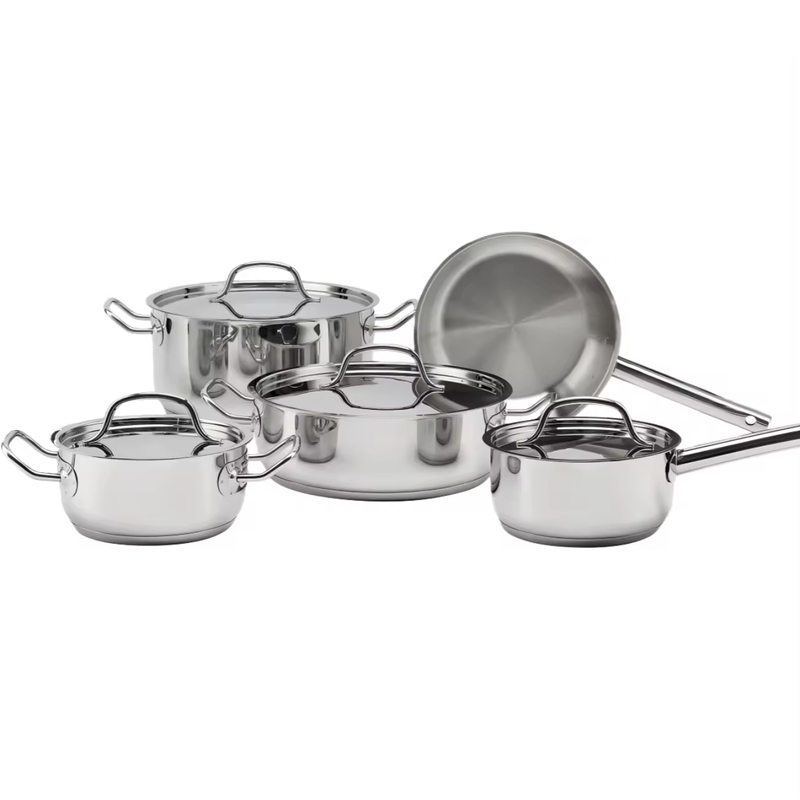 material | Body: S.S.201 or S.S.304 #0.5mm Bottom: braze welding bottom, 1mm alum+1.5mm Iron,and 0.5mm S.S.430 for induction Handle: S.S.201 wire handle, by welding. Lid: S.S.201 or S.S.304 #0.5mm Finish: Pots and pans: Inside satin finished and outisde mirror finished Lid: Inside satin and outisde mirror finished |