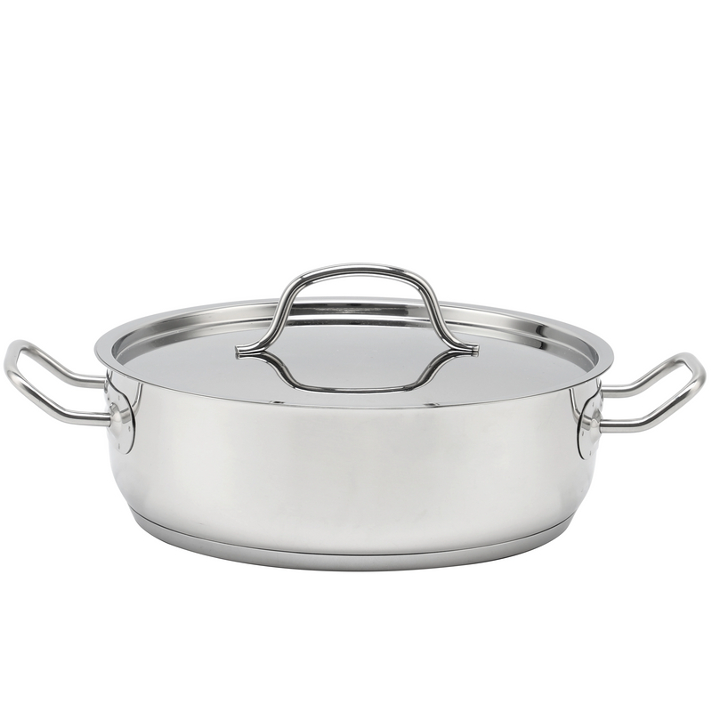material | Body: SS304, 0.5mm, Bottom:0.5mm alum+1.0mm iron+0.5mm alum,and 0.5mm SS430 for induction, Handle & Knob:SS201 Lid:stainless steel lid, Finish: satin finish inside and outside |